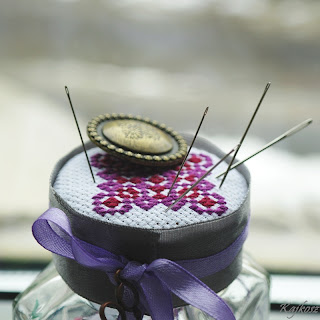 Zwykły hafcik, z tym wzorem (tyle, że miał on więcej elementów, to tylko środkowa część) planowałam swego czasu popełnić biscornu, ale zaginął mi jeden hafcik.